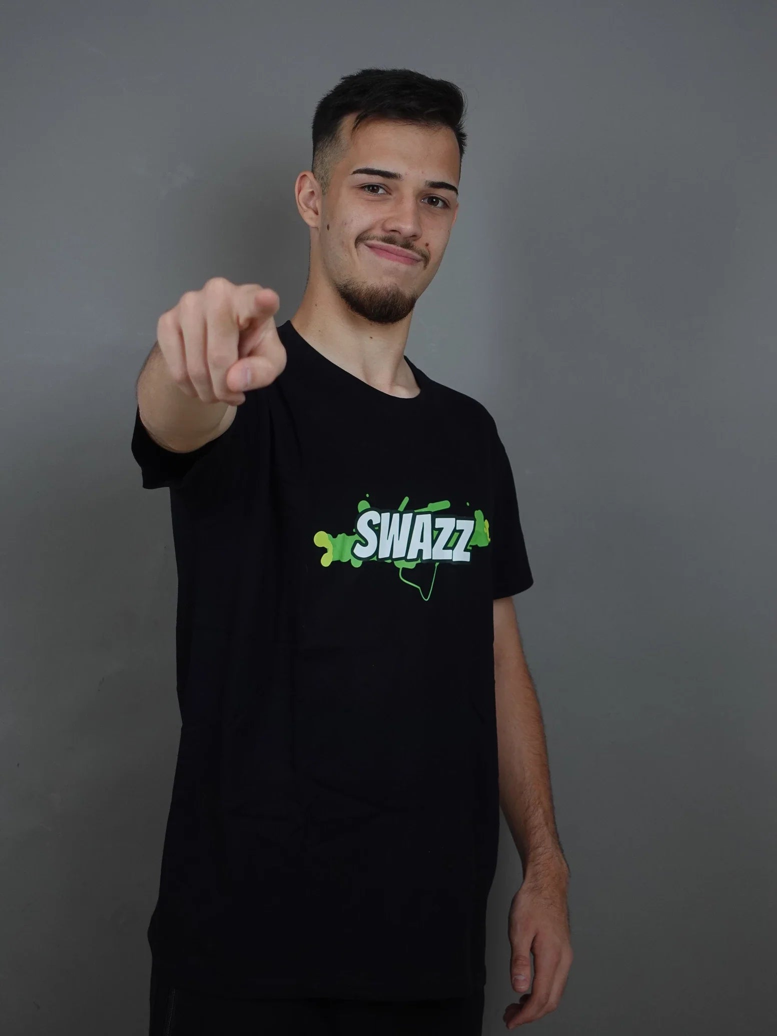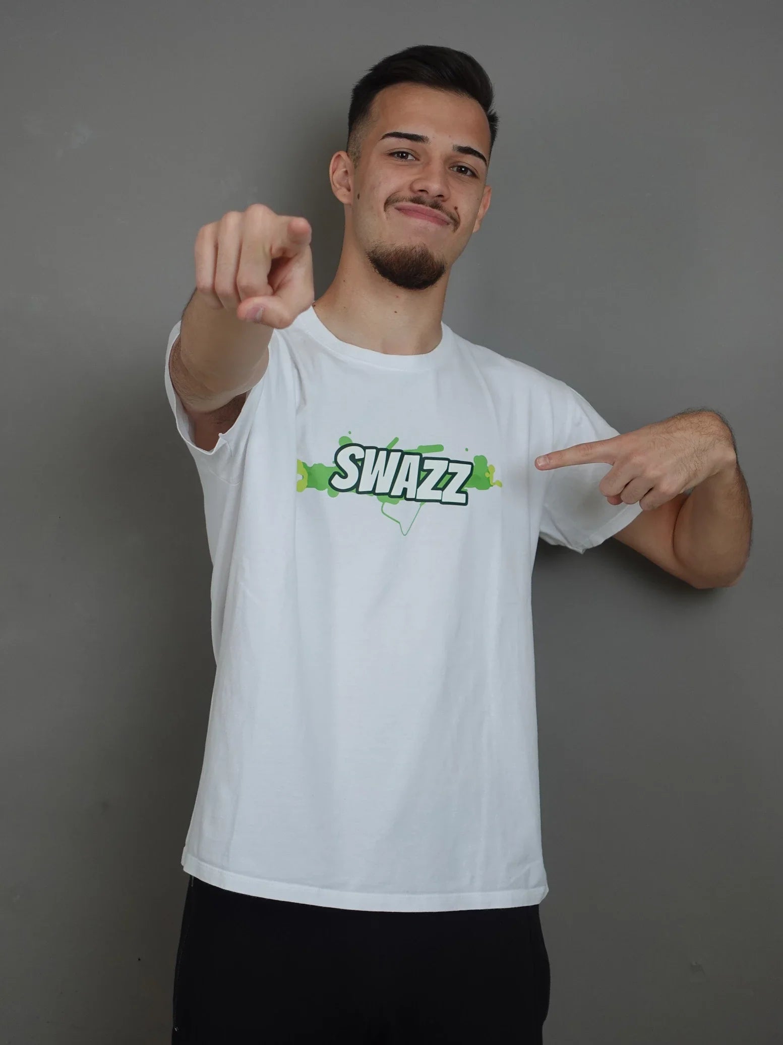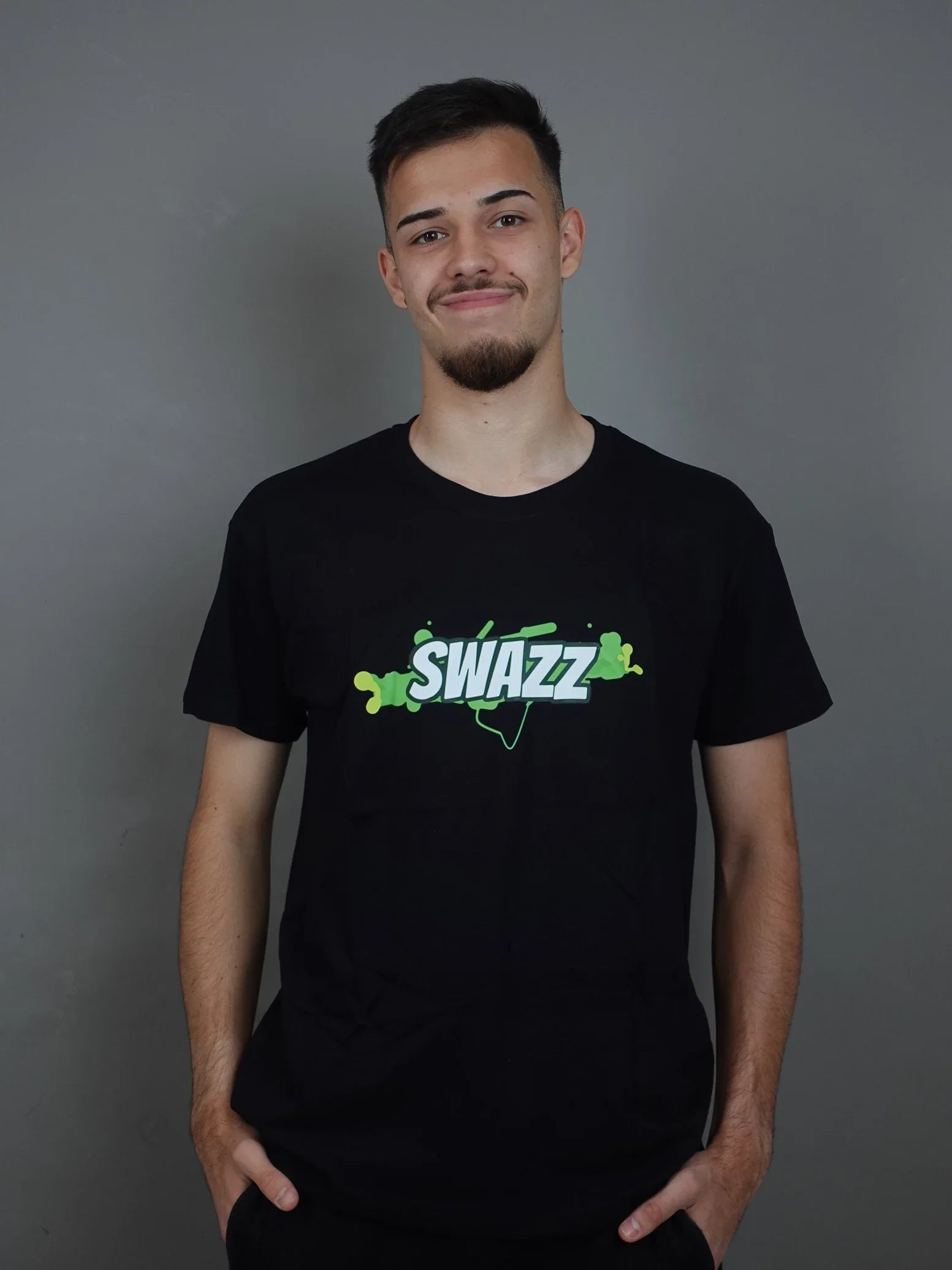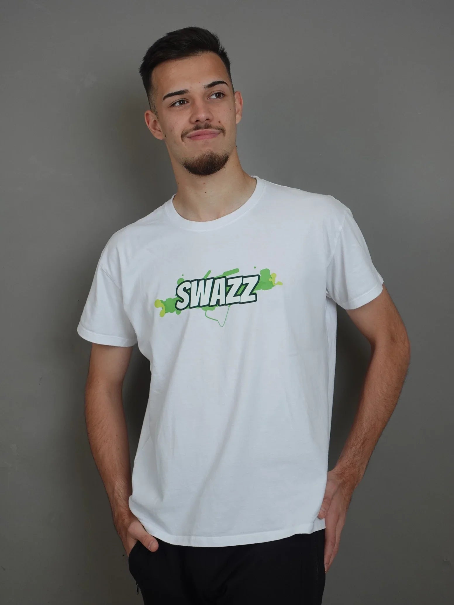 Majica s kratkimi rokavi z napisom swazz spredaj ni vertikalno zadaj. Majica je iz kvalitetnega bombaža in je visoke gramature.